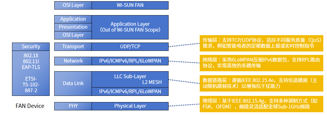 注:Wi-SUN FAN(Field Area Network)用于广域物联网连接,Wi-SUN HAN(Home Area Network)专注智能家居,Wi-SUN RLMM(Roadside and Low-speed Mobile)适用于车联网,Wi-SUN JUTA(Japan Utility)针对日本市场需求。